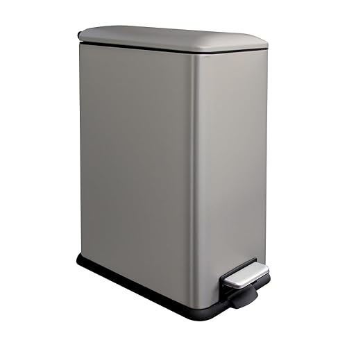 12 Gallon Trash Can, Stainless Steel Trash Can with Fingerprint-Resistant, Removal Inner Buck &Soft Close Plastic Lid, Step Garbage Can for Kitchen and Office, 45 Liter Capacity