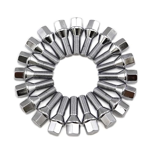 Set of 20 14x1.5 Wheel Lug Bolts 50mm Shank 17mm Hex Conical Seat, Black