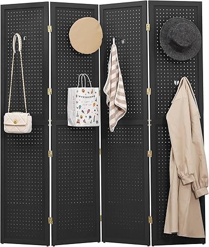 DURASPACE 4 Panel Pegboard Freestanding, 5.6 FT Wooden Foldable Privacy Screen, Portable Jewelry Display Board for Retail, Craft, Cloth, Art Display Panels (White)