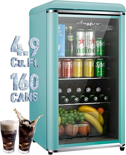 4.9 Cu.Ft Retro Small Beverage Refrigerator Cooler with Double Tempered Glass Door, 120 Can Wine Drink Beer Mini Fridge for Office Bedroom Bar with 7 Temperatures, Adjustable Shelves, Red
